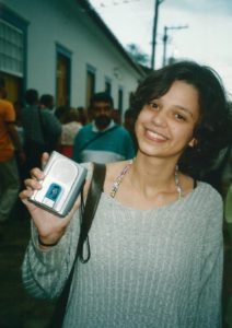 Biancamaria Binazzi: Fui da primeira turma do curso. A gente ainda gravava os trabalhos de rádio em fita K7! Quando terminei o colegial já tocava flauta transversal, estava descobrindo o choro e o samba, sempre sintonizada nas rádios. Desde os tempos de escola gostava de ler sobre a “velha guarda” e ir no Centro Cultural São Paulo escutar discos da Discoteca Oneyda Alvarenga. Apesar de adorar tocar, não era muito de praticar o instrumento por horas e horas, e pensei que a faculdade de música talvez não me ajudasse a chegar onde eu queria. O curso de Rádio e TV apareceu como uma possibilidade de continuar perto da música. Poderia ser feliz em uma profissão que me permitisse falar sobre música, pesquisar, ouvir, difundir!